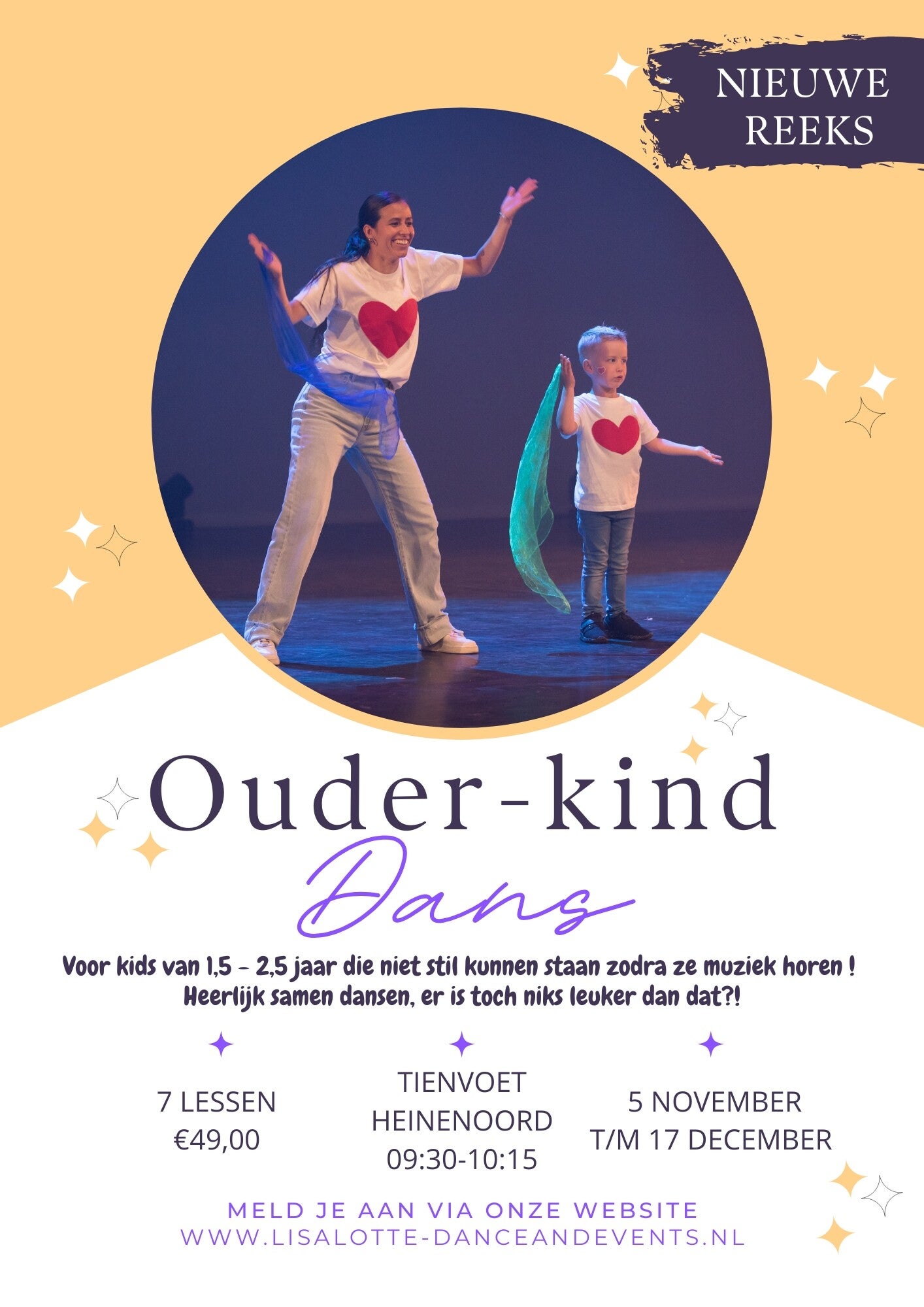 | Woensdag | Heinenoord | 09:30-10:15 | Ouder-Kind dans 1,5-2,5 jaar NIEUW !! |